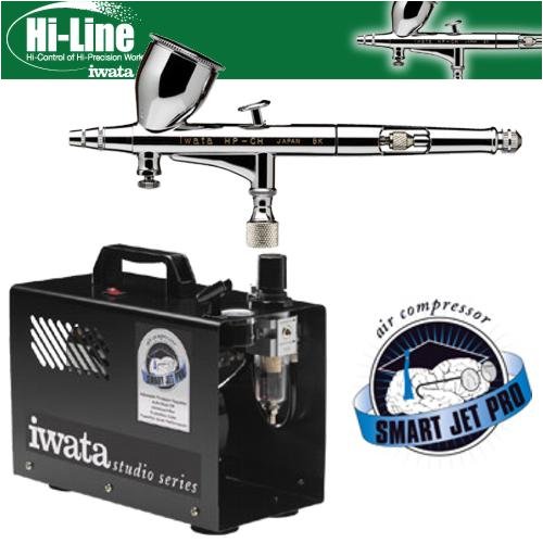 IWATA HI-LINE HP-CH AIRBRUSHING SYSTEM WITH SMART JET PRO AIR COMPRESSOR by MASTER AIRBRUSH