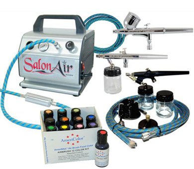 Master Airbrush Brand Model S68 Airbrush Set Precision Dual-Action Siphon Feed Airbrush.Airbrush-Depot Brand Model TC-60 "Salon Air" Air Compressor with Small Air Storage Tank.Master Airbrush Brand Model E91 Airbrush Set Single-Action Siphon Feed External Mix Airbrush.6" Braided Air Hose with Mini-Inline Moisture Filter (Full 2-Year Warranty).Master Airbrush Brand Model G22 Airbrush Set Precision Dual-Action Gravity Feed Airbrush. System embodys: Master Airbrush Brand Model G22 Airbrush Set Precision Dual-Action Gravity Feed Airbrush with a 0.3mm needle/nozzle and a 1/3 ounces gravity fluid cup along with a 6' Braided Air Hose (Full 1-Year Warranty) Master Airbrush Brand Model S68 Airbrush Set Precision Dual-Action Siphon Feed Airbrush with a zero.35mm needle/nozzle, 3/4 ounces siphon bottle, 1/6 oz. siphon cup and a 6' Braided Air Hose (Full 1-Year Warranty). Master Airbrush Brand Model E91 Airbrush Set Single-Action Siphon Feed External Mix Airbrush with a 0.8mm needle/nozzle, 2 - 3/4 oz. siphon bottles, 5' Plastic and a 6' Braided Air Hose (Full 1-Year Warranty) Airbrush-Depot Brand Model TC-60 "Salon Air" Air Compressor with Small Air Storage Tank and a Pressure Adjustment Regulator & Gauge together with a 6" Braided Air Hose with Mini-Inline Moisture Filter (Full 2-Year Warranty). 12 - 0.7 oz Bottles of Americolor Brand AmeriMist Airbrush Food Colors. Compressor Model TC-60 Super Quiet High Performance "Salon Air" Airbrush Compressor (Maintenance Free, Oil-less & Quiet) Exceptional Value for a Quite Powerful, Reliable and Super Quiet Compressor! Great for Mobile Airbrushing! Suitable for: Cosmetics, Tanning, Temporary Tattoos, Nail Art, Cake Decorating, Auto Graphics, Hobbies! An Ideal Compact Work Station Compressor, Powerful: 1/6 hp, Delivers High Air Volume (0.6 CFM), Portable: Light-Weight and Compact w/Carrying Handle. Precise: Air Pressure Adjustment Regulator and Gauge. Includes: 6" Braided Hose w/Mini-Inline Moisture Filter. This Compressor Supports Airbrushing for Most: Airbrush Types Applications Paint and Color Media Levels of Users from Beginner to Advanced Artists..