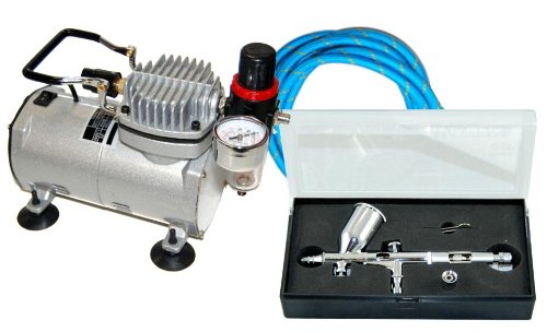 6' Braided Hose with Inline Filter.Portable: Light-Weight and Compact w/Carrying Handle.Powerful Compressor: 1/5 hp, Delivers High Air Volume (0.8 CFM).Suitable for Cosmetics, Tanning, Temporary Tattoos,Nail Art, Cake Decorating, Auto Graphics, Hobbies.Master Airbrush Brand Model G45 Airbrush Precision Dual-Action Gravity Feed Airbrush. Master Airbrush Brand Model G45 Airbrush Precision Dual-Action Gravity Feed Airbrush with 6' Braided Hose w/Inline Filter (Full 1-Year Warranty) Compressor Features: Powerful: At 1/5 Horsepower this unit delivers extra Air Volume (CFM) and Air Pressure (PSI) than any airbrush calls for. Precise Air Adjustment: True Diaphragm Pressure Regulator with Gauge and Water Trap Filter that supplys actual adjustment of airflow and will make sure that clean, dry air. Automatic On/Off Shutoff: Preset for computerized turn off when air tank reaches 60 PSI. Preset for automatic activate when air tank force is below 35 PSI. This enables an extended compressor existence from less motor put on and heat-related moisture. Constant Pressure and Zero Pulsation: Air is drawn from the large air storage tank providing you a constant regulated power. There's zero pulsation as a result of air is drawn from the tank which eliminates any pulsation effect from the pistons. "Air-On-Demand": Designed to work simplest while you do, produces air on demand at the your regulated pressure. Thermally Protected: Automatically turns itself off if the unit develop intos over heated. Maintenance Free: Oil-less Piston Motor Low Noise: Very Quiet Operation, only fifty nine db..